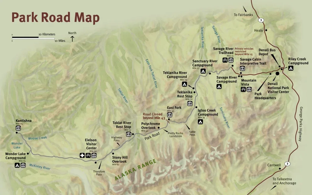 🚧 2026 Road Update! Due to the Pretty Rocks Landslide, Denali Park Road will only be open up to Mile 43 (East Fork) in 2026, even for buses. You can check current conditions here.