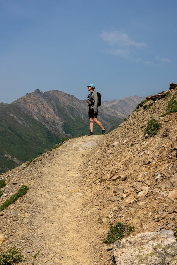If you’re up for it, start the day with the Mount Healy Overlook Trail, the second-most popular hike in Denali. This 5-mile (8 km) round-trip hike begins right at the Denali Visitor Center and delivers sweeping views of the Nenana River, the park entrance, and deep into the wilderness. It’s a steady climb, but one we found absolutely worth the effort.